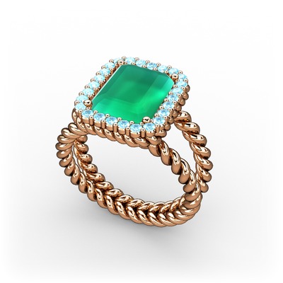 Kök zümrüt ve akuamarin 14 ayar rose altın yüzük