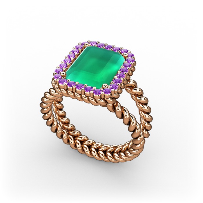 Kök zümrüt ve ametist 18 ayar rose altın yüzük