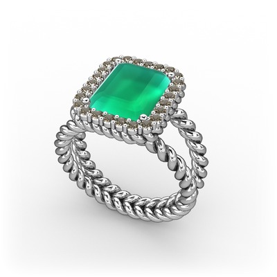 Kök zümrüt ve dumanlı kuvars 18 ayar beyaz altın yüzük