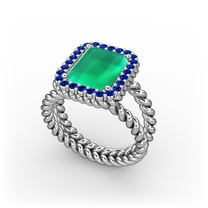 Kök zümrüt ve lab safir 18 ayar beyaz altın yüzük