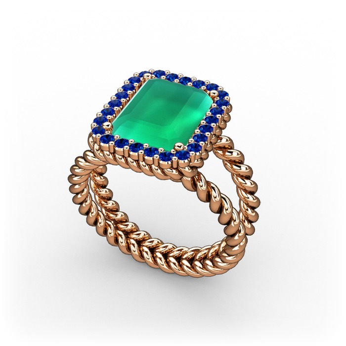 Kök zümrüt ve lab safir 18 ayar rose altın yüzük