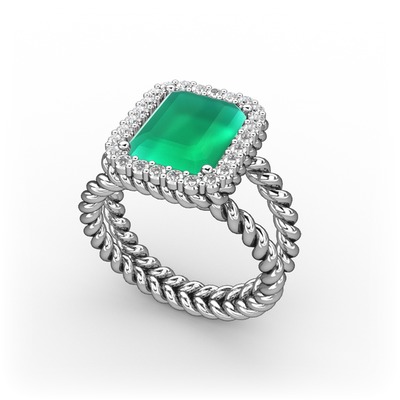 Kök zümrüt ve pırlanta 14 ayar beyaz altın yüzük (0.39 karat)