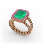 Kök zümrüt ve rodolit garnet 925 ayar rose altın kaplama gümüş yüzük