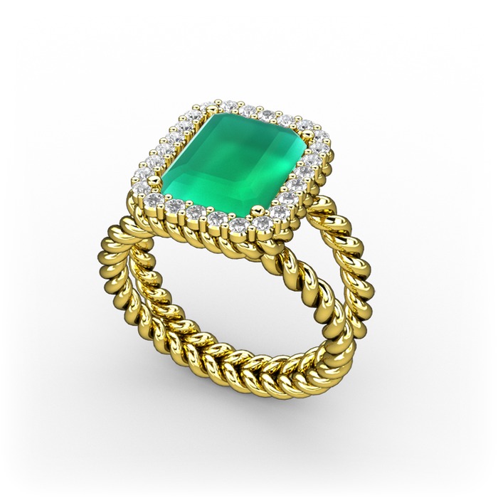Kök zümrüt ve swarovski 8 ayar altın yüzük