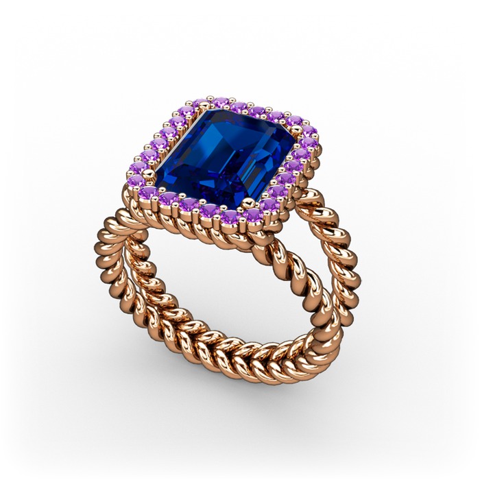 Lab safir ve ametist 8 ayar rose altın yüzük