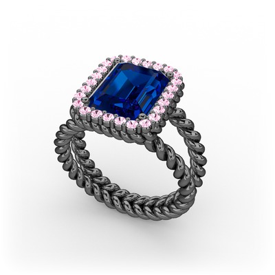 Lab safir ve pembe kuvars 925 ayar siyah rodyum kaplama gümüş yüzük