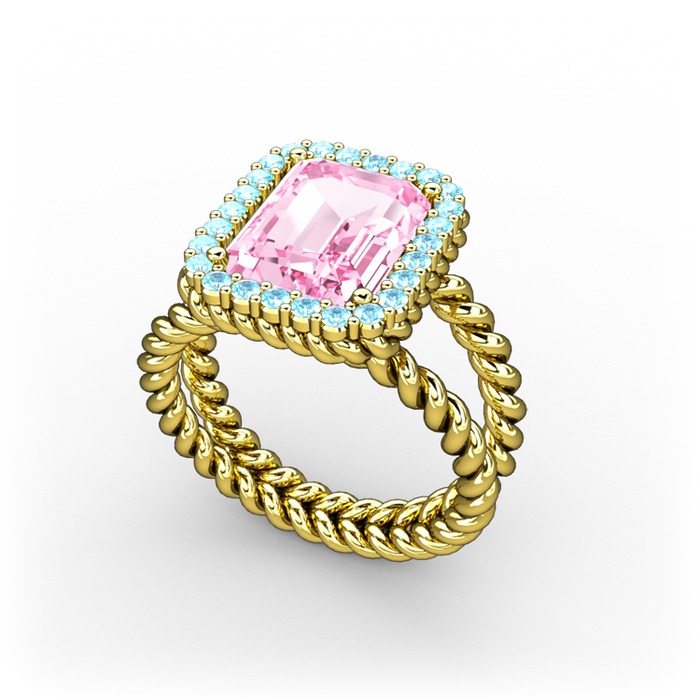 Pembe kuvars ve akuamarin 14 ayar altın yüzük