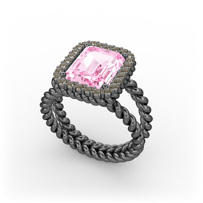 Pembe kuvars ve dumanlı kuvars 925 ayar siyah rodyum kaplama gümüş yüzük
