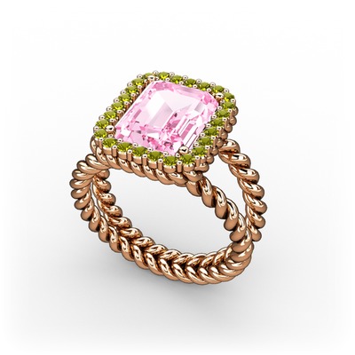 Pembe kuvars ve peridot 18 ayar rose altın yüzük