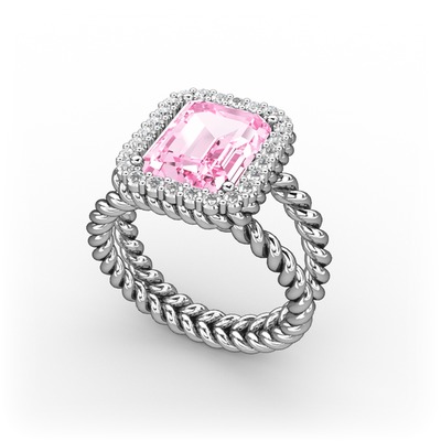 Pembe kuvars ve pırlanta 18 ayar beyaz altın yüzük (0.39 karat)