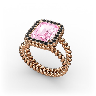 Pembe kuvars ve siyah zirkon 925 ayar rose altın kaplama gümüş yüzük