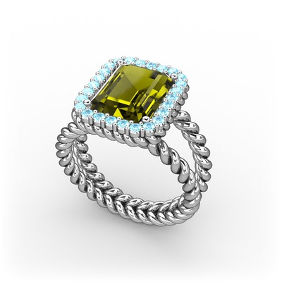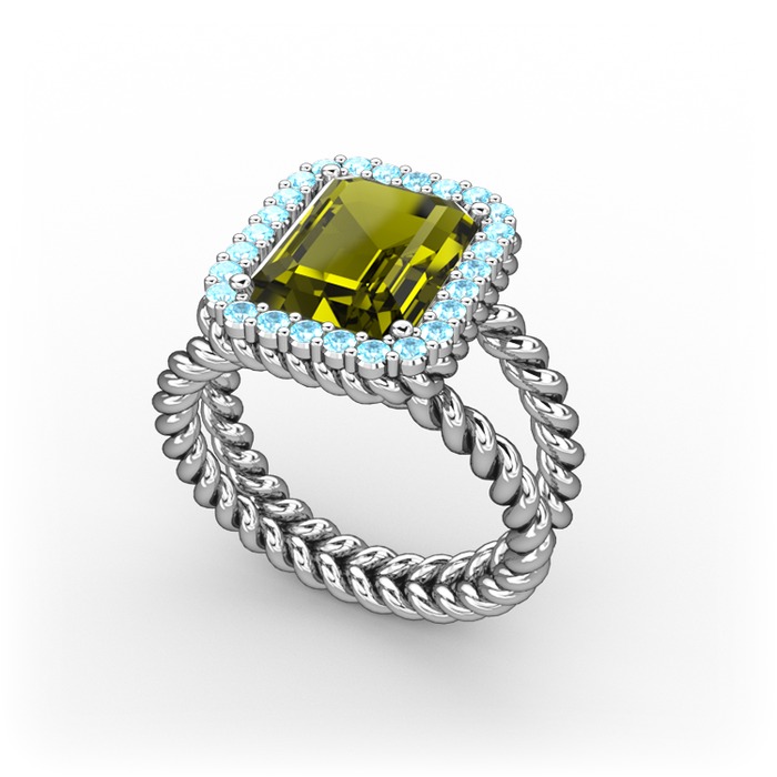 Peridot ve akuamarin 14 ayar beyaz altın yüzük