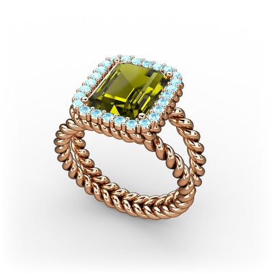 Peridot ve akuamarin 14 ayar rose altın yüzük