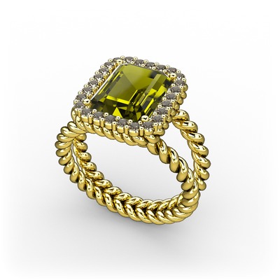 Peridot ve dumanlı kuvars 8 ayar altın yüzük