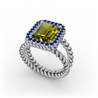 Peridot ve lab safir 8 ayar beyaz altın yüzük