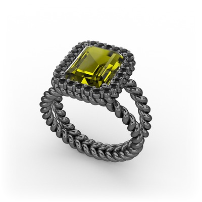 Peridot ve siyah zirkon 925 ayar siyah rodyum kaplama gümüş yüzük