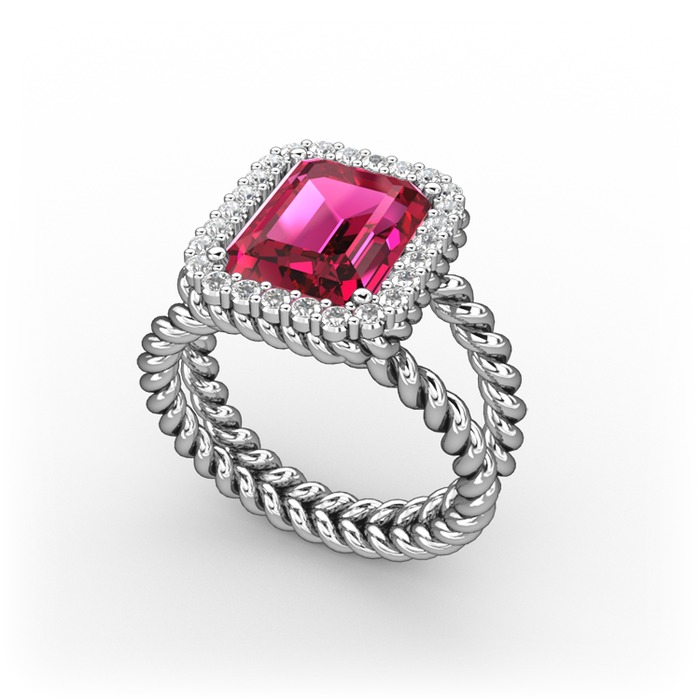 Rodolit garnet ve pırlanta 925 ayar gümüş yüzük (0.39 karat)