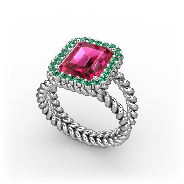 Rodolit garnet ve yeşil kuvars 18 ayar beyaz altın yüzük