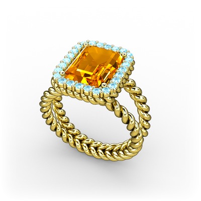 Sitrin ve akuamarin 925 ayar altın kaplama gümüş yüzük