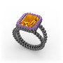 Sitrin ve ametist 925 ayar siyah rodyum kaplama gümüş yüzük