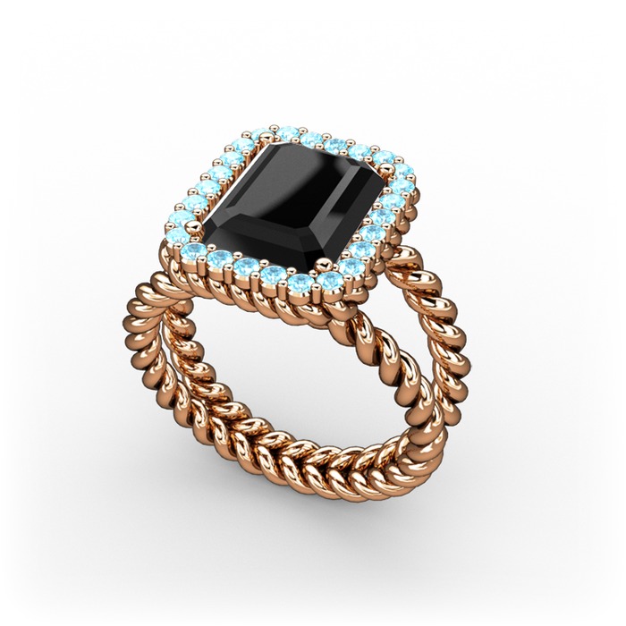 Siyah zirkon ve akuamarin 8 ayar rose altın yüzük