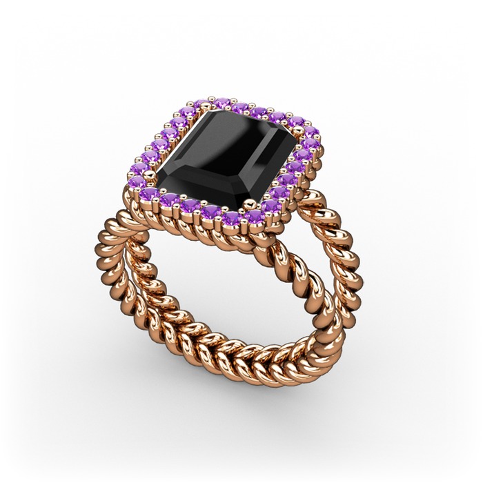 Siyah zirkon ve ametist 14 ayar rose altın yüzük
