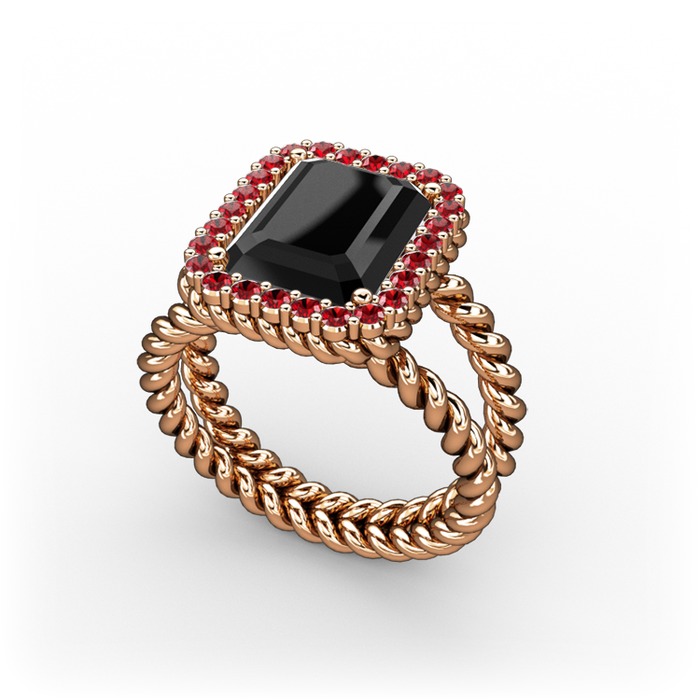 Siyah zirkon ve garnet 18 ayar rose altın yüzük