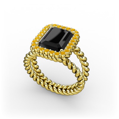 Siyah zirkon ve sitrin 8 ayar altın yüzük
