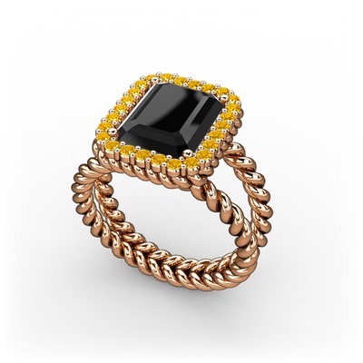 Siyah zirkon ve sitrin 8 ayar rose altın yüzük