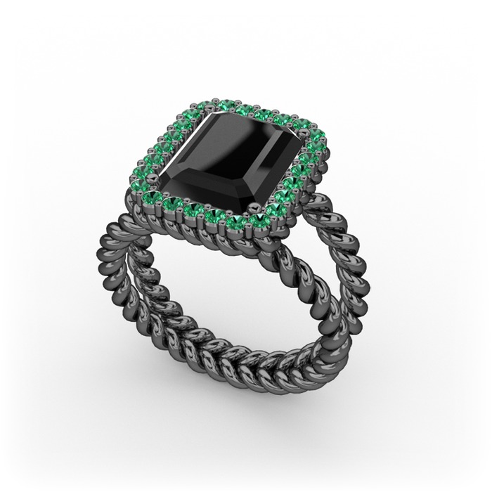 Siyah zirkon ve yeşil kuvars 925 ayar siyah rodyum kaplama gümüş yüzük