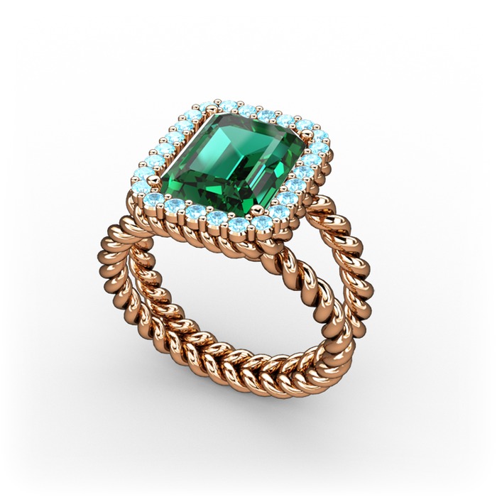 Yeşil kuvars ve akuamarin 18 ayar rose altın yüzük