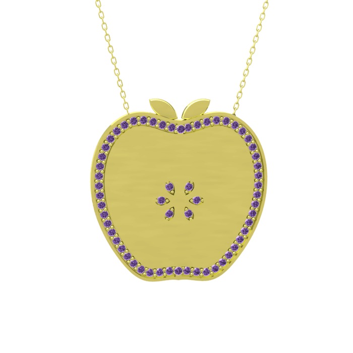 Ametist 14 ayar altın kolye (40 cm gümüş rolo zincir)