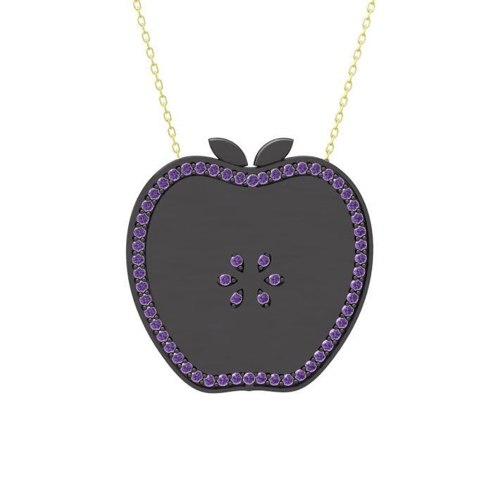 Ametist 925 ayar siyah rodyum kaplama gümüş kolye (40 cm altın rolo zincir)