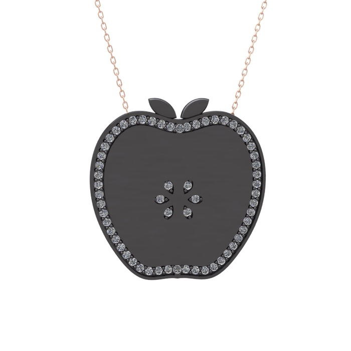 Beyaz zirkon 925 ayar siyah rodyum kaplama gümüş kolye (40 cm rose altın rolo zincir)
