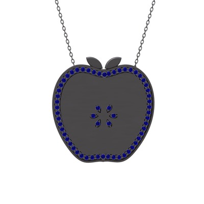 Lab safir 925 ayar siyah rodyum kaplama gümüş kolye (40 cm gümüş rolo zincir)