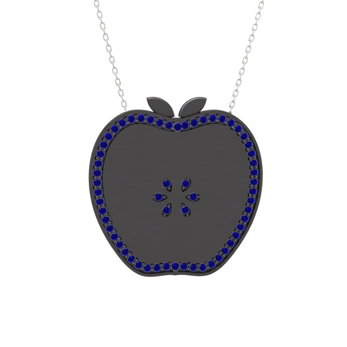 Lab safir 925 ayar siyah rodyum kaplama gümüş kolye (40 cm gümüş rolo zincir)