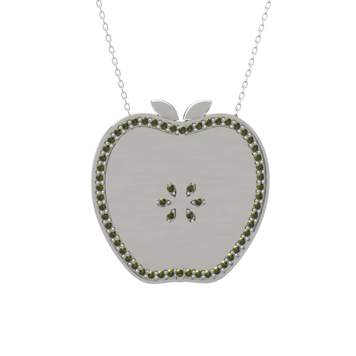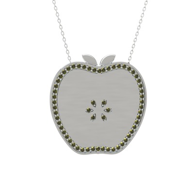 Peridot 18 ayar beyaz altın kolye (40 cm beyaz altın rolo zincir)