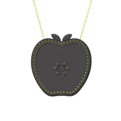 Peridot 925 ayar siyah rodyum kaplama gümüş kolye (40 cm altın rolo zincir)