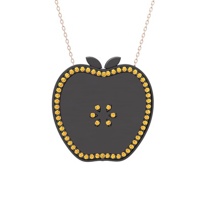 Sitrin 925 ayar siyah rodyum kaplama gümüş kolye (40 cm rose altın rolo zincir)