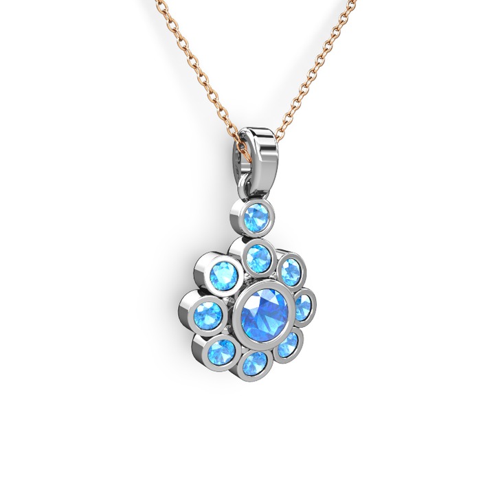 Akuamarin 14 ayar beyaz altın kolye (40 cm gümüş rolo zincir)