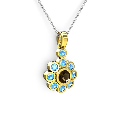 Akuamarin ve dumanlı kuvars 14 ayar altın kolye (40 cm beyaz altın rolo zincir)