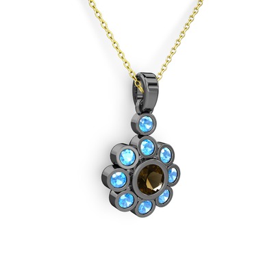 Akuamarin ve dumanlı kuvars 925 ayar siyah rodyum kaplama gümüş kolye (40 cm gümüş rolo zincir)