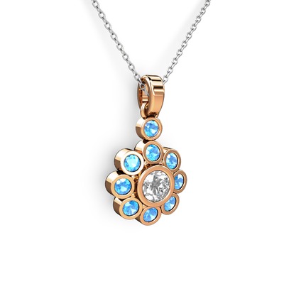 Akuamarin ve elmas 8 ayar rose altın kolye (0.5 karat, 40 cm beyaz altın rolo zincir)