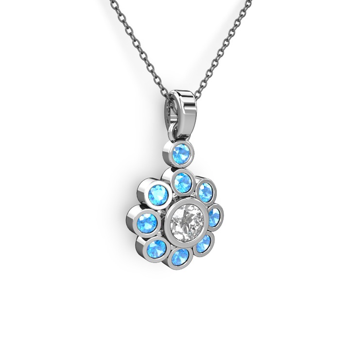 Akuamarin ve elmas 925 ayar gümüş kolye (0.5 karat, 40 cm gümüş rolo zincir)