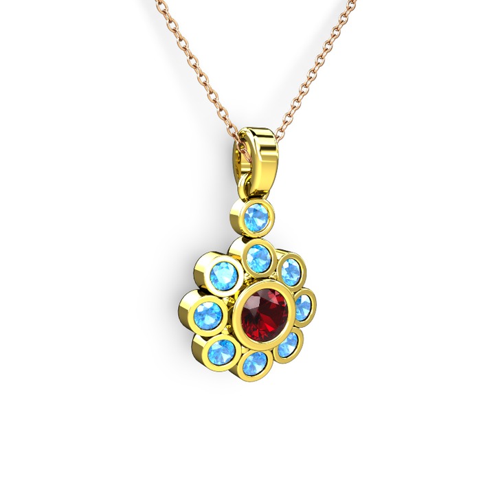 Akuamarin ve garnet 8 ayar altın kolye (40 cm rose altın rolo zincir)
