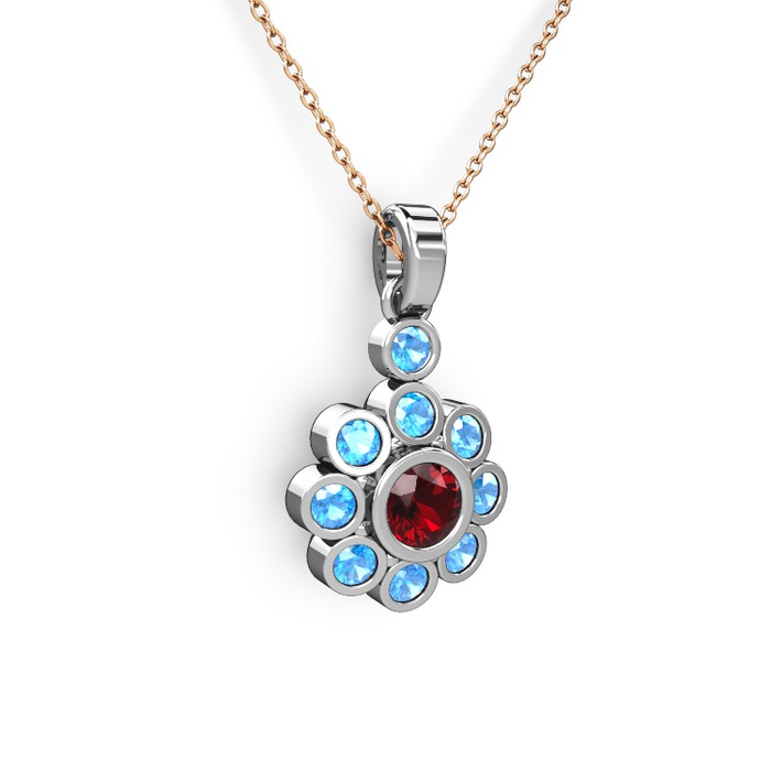 Akuamarin ve garnet 925 ayar gümüş kolye (40 cm gümüş rolo zincir)