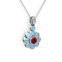 Akuamarin ve kök yakut 8 ayar beyaz altın kolye (40 cm gümüş rolo zincir)