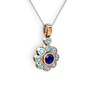 Akuamarin ve lab safir 18 ayar rose altın kolye (40 cm beyaz altın rolo zincir)