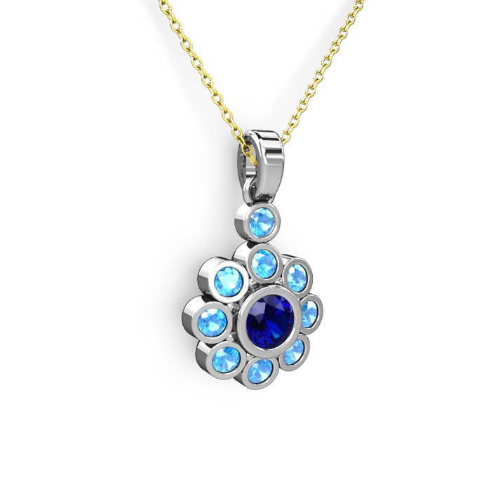 Akuamarin ve lab safir 8 ayar beyaz altın kolye (40 cm altın rolo zincir)