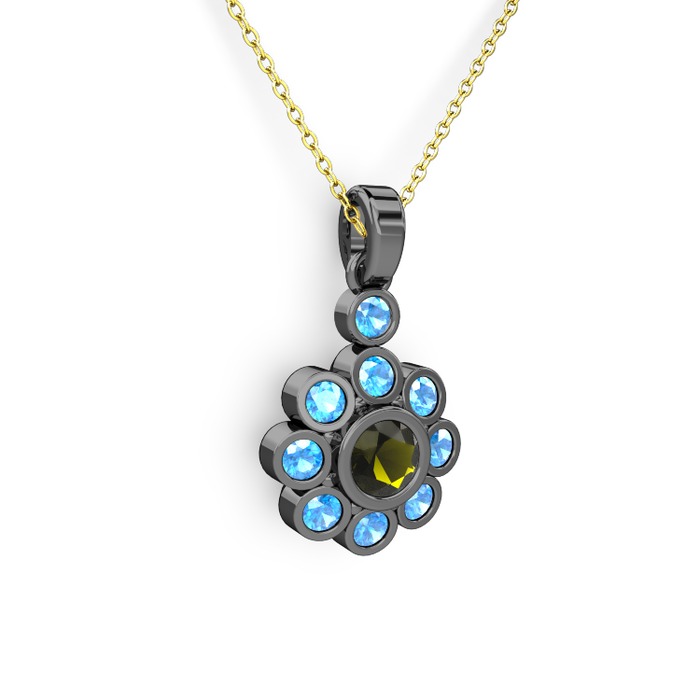 Akuamarin ve peridot 925 ayar siyah rodyum kaplama gümüş kolye (40 cm altın rolo zincir)